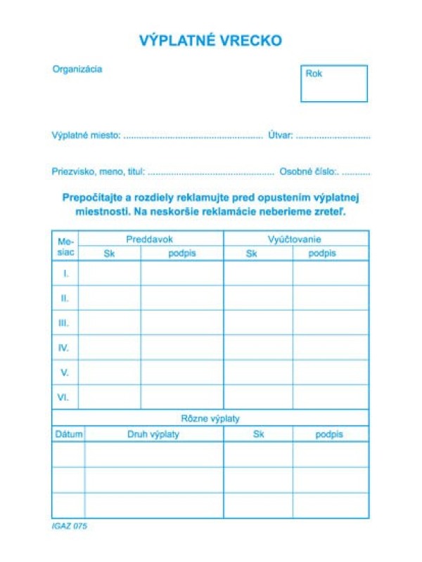 Papierové výplatné vrecko.