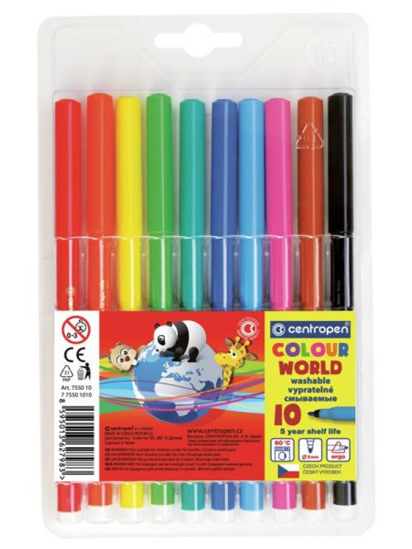 Sada 10 kusov farebných popisovačov centropen so šírkou stopy 1 mm, písanie na papier.