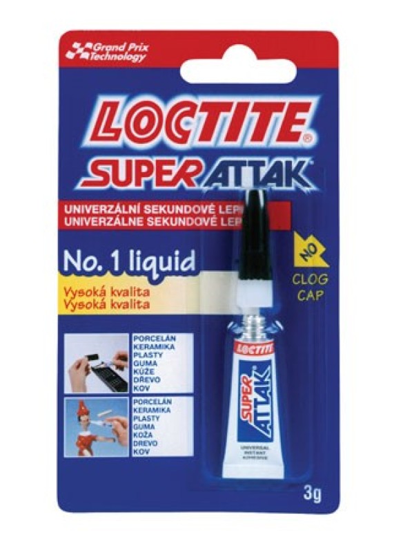 Sekundové lepidlo Super Attak Loctite lepí porcelán, keramiku, drevo, gumu, umelú hmotu, korok.