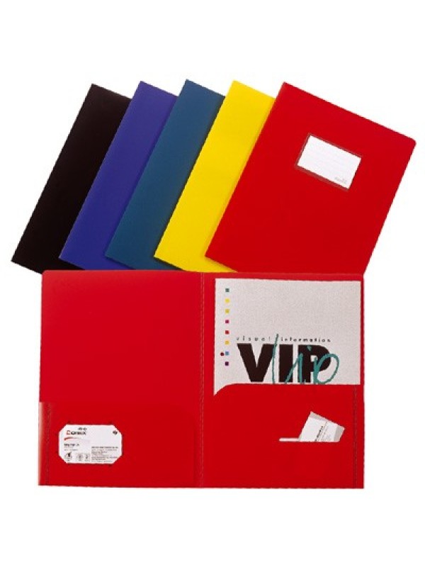 Plastové dosky na vrchu v strede štítok, vo vnútri vľavo i vpravo záložky v spodnej tretine, výsek na vizitku.