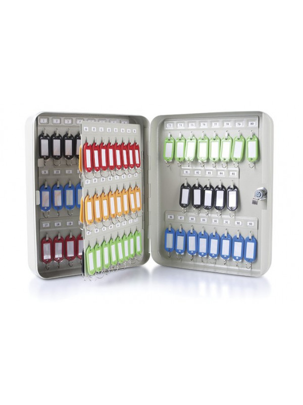 Kovová skrinka na 93 kľúčov s bezpečnostným zámkom a s dvomi kľúčmi.