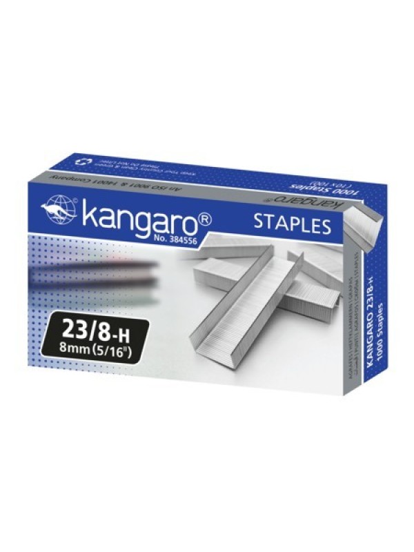 Náboje - spinky Maxi Kangaro 23/8 sú určené pre zošívanie väčšieho počtu papierov na veľkých maxi zošívačkách. Zošijú 40 listov papiera. Zošívacie spinky KANGARO sú vyrobené z najkvalitnejšieho oceľového drôtu. Vždy garantujú vynikajúce výsledky pri zošívaní. Krabička obsahuje 2000ks nábojov.
