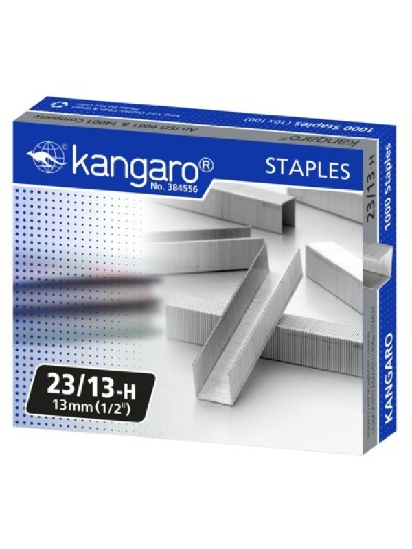 Náboje - spinky Maxi Kangaro 23/13 sú určené pre zošívanie väčšieho počtu papierov na veľkých maxi zošívačkách. Zošijú 90 listov papiera. Zošívacie spinky KANGARO sú vyrobené z najkvalitnejšieho oceľového drôtu. Vždy garantujú vynikajúce výsledky pri zošívaní. Krabička obsahuje 1000ks nábojov.