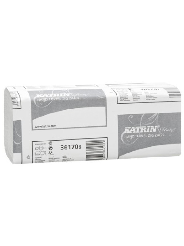 Čisto biele dvojvrstvové utierky Katrin 65968 (staré značenie 36170) sú skladané utierky ZZ, počet: 150 ks.