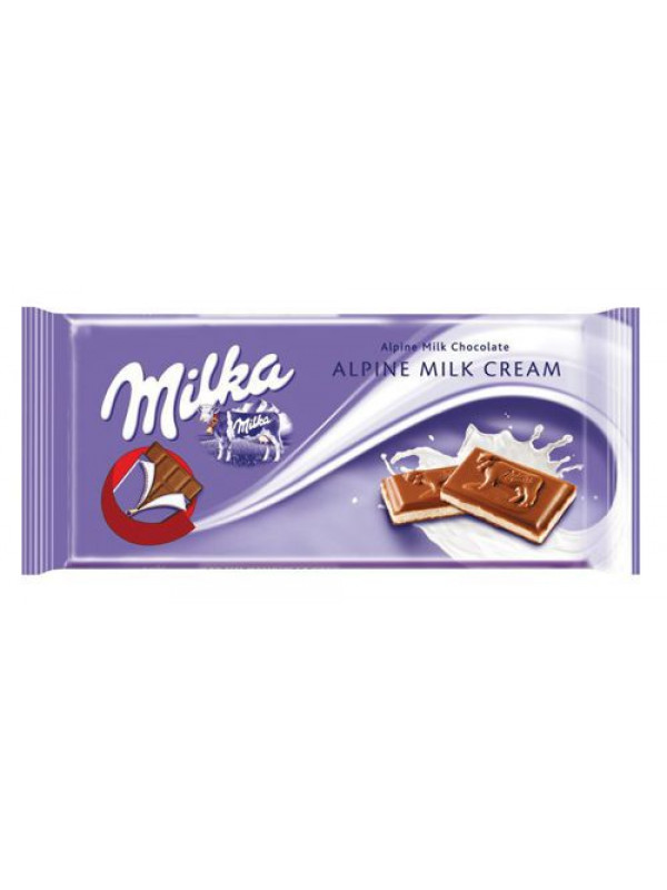 Čokoláda Milka - mliečna čokoláda z alpského mlieka s mliečnou náplňou, 100g.