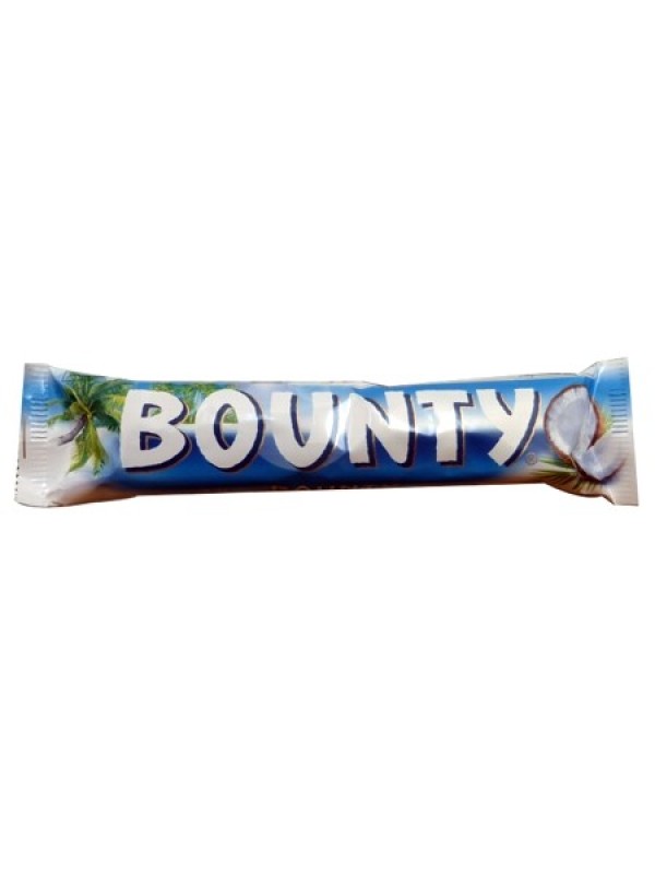 Mliečna čokoládová tyčinka Bounty s kokosovou náplňou. Balenie obsahuje 2 ks, spolu 57g.