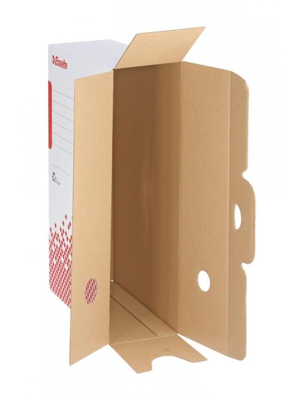 Archívna škatuľa s dvojitými bočnicami, ktoré chránia box pred otvorením. Vhodný pre dokumenty formátu A4, možnosť archivácie vo vodorovnej aj zvislej polohe. Vyrobený zo 100% recyklovanej vlnitej lepenky.