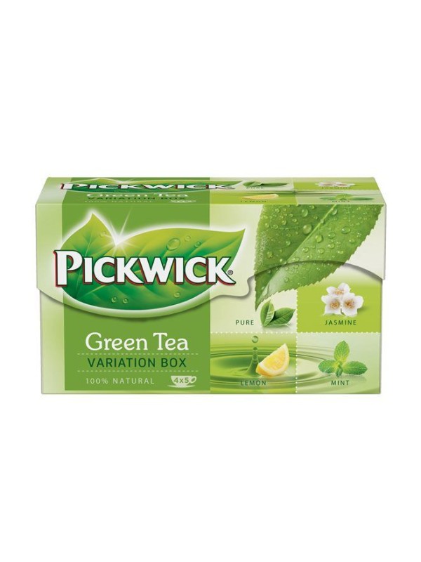 Zelený čaj PICKWICK zelené variácie - čistý zelený čaj, zelený čaj s citrónom, zelený čaj s jazmínom, zelený čaj s mätou.