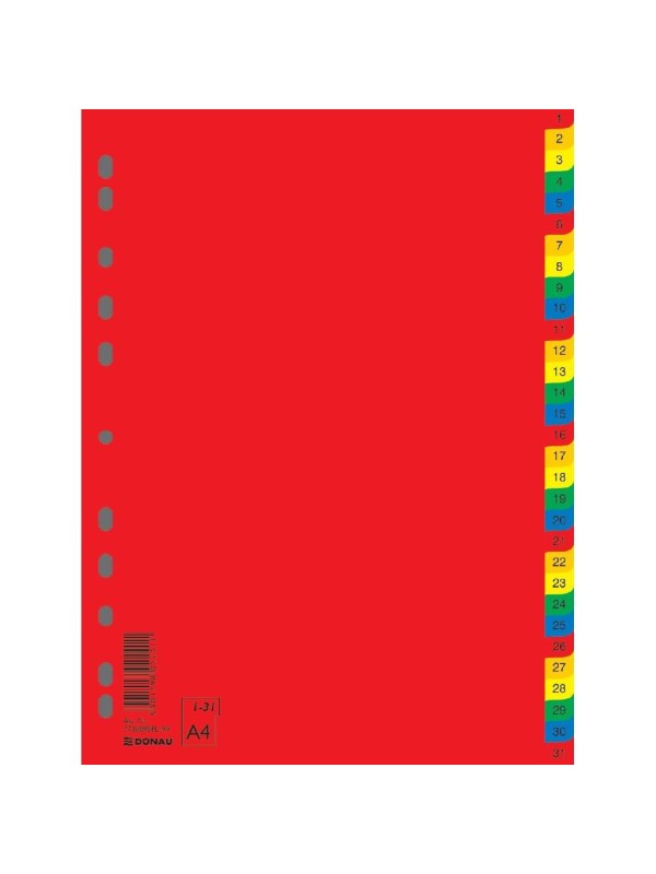 Číselný rozraďovač 1 - 31 vhodný na triedenie dokumentov. Vyrobený z tuhého polypropylénu.