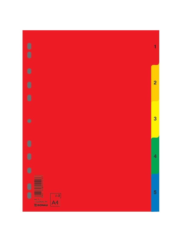Číselný rozraďovač1 - 5 vhodný na triedenie dokumentov. Vyrobený z tuhého polypropylénu. Jednotlivé listy rôznych farieb, možnosť použitia v pákovom aj krúžkovom zakladači.