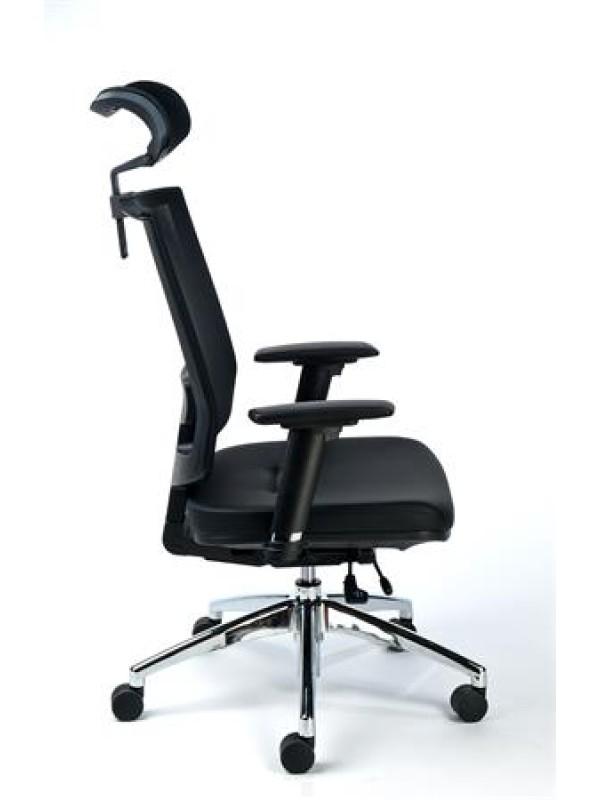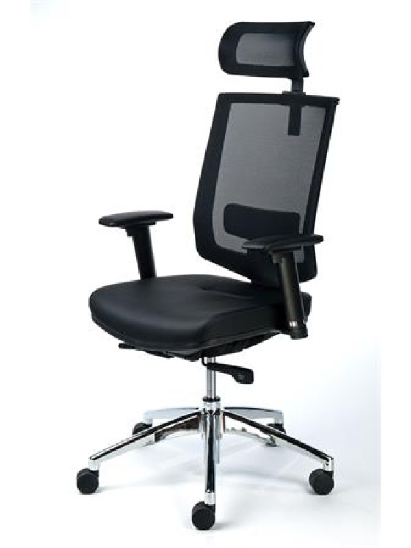 MaYAH Maxy je kancelárska stolička s vysokým operadlom. Komfortné vyhotovenie, ergonomicky tvarované operadlo, plynové nastavenie výšky, nastaviteľná hĺbka sedadla, jedným pohybom nastaviteľná výška operadla.