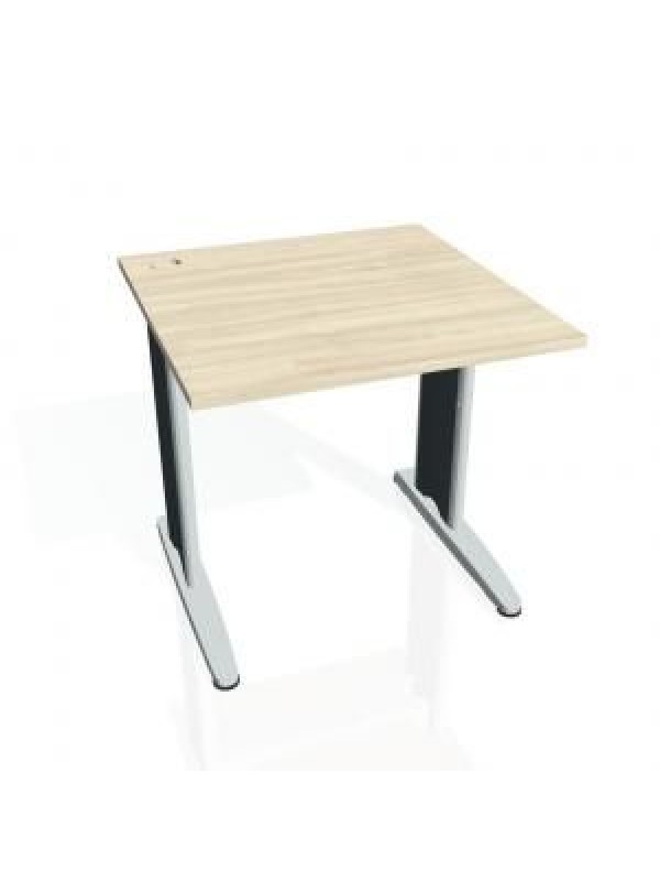 Elegantný dizajn a originalita technického riešenia. Úsporný systém reťazenia. Pracovná doska je tvarovaná tak, aby ste mohli maximálne využiť plochu dosky a nájsť optimálnu pozíciu pre monitor svojho počítača. Doska má hrúbku 25 mm a je olepená 2mm ABS hranou, ktorá stoly pomáha chrániť pred poškodením. O káble od PC alebo stolovej lampy, sa postará praktická priechodka, ktorá káble jednoducho zvedie pod dosku, kde si s nimi poradia šikovne skonštruované držiaky. Budete tak mať istotu, že sa káble nezapletú a nebudú vám prekážať pri práci. Moderné kovové nohy vás oslovia súčasným dizajnom a funkčnosťou. Samozrejmosťou je systém rektifikácie, ktorý v prípade nerovnej podlahy umožňuje výškové dorovnanie stola až o 1,5 cm. Vaša pracovná plocha tak bude vždy dokonale rovná. Spojovací systém je automaticky súčasťou každého prvku. Stoly dodávame demontované s prehľadným montážnym návodom. Plastová výplň nôh je vo farbe antracit. Farba stola agát. Rozmery 80 x 75,5 x 80 cm.