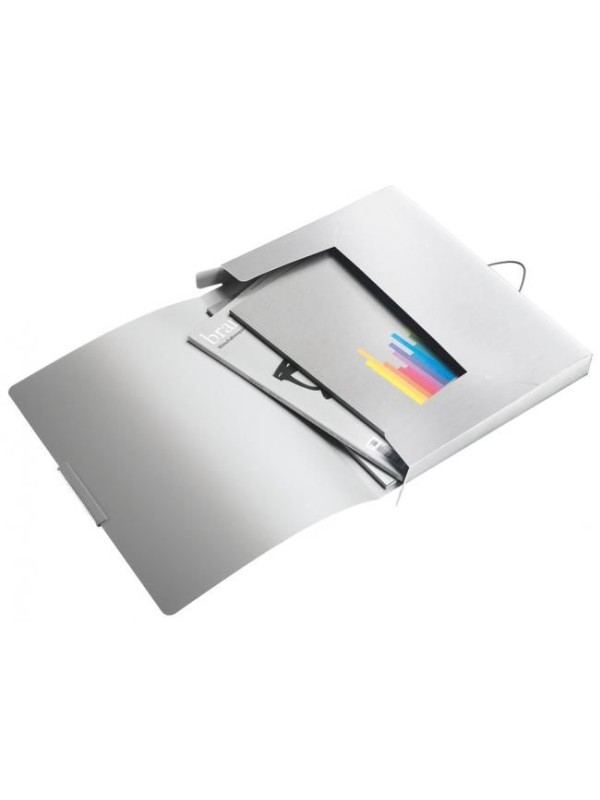 Obal ideálny na prenos dokumentov. Vyrobený z odolného polypropylénu. Povrch v dizajne brúsenej ocele.