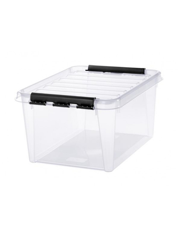 Úložný box, plastový, 32 l, čierne úchytky, SMARTSTORE "Classic 31", priehľadný