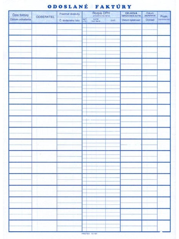 Kniha odoslaných faktúr s DPH, formát: A4.