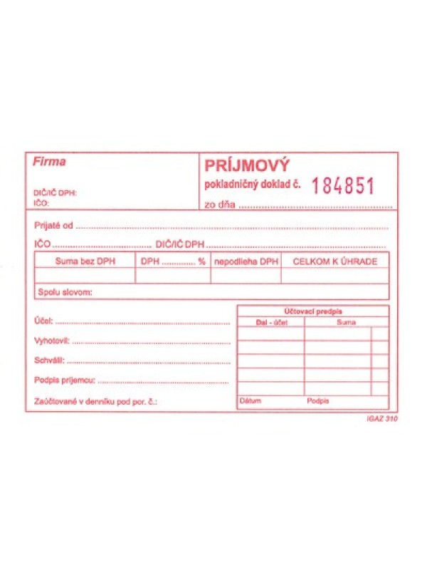 Príjmový pokladničný doklad samoprep. číslovaný