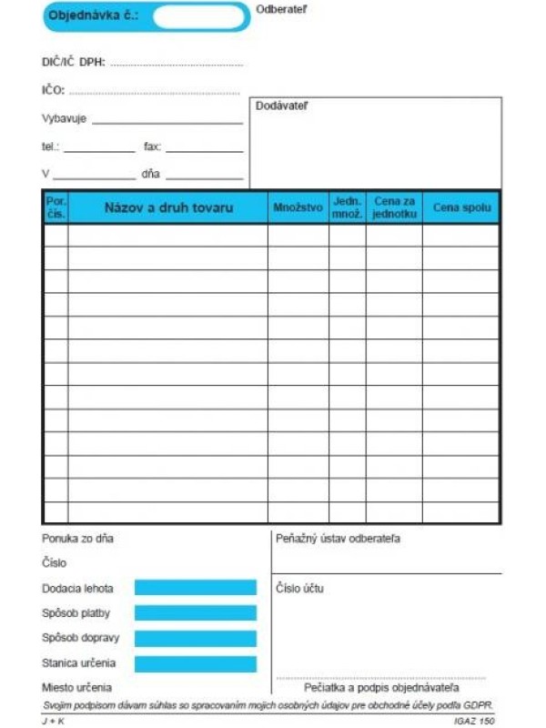Kniha objednávok samoprepisovacia. Formát: A5, 100 listov.