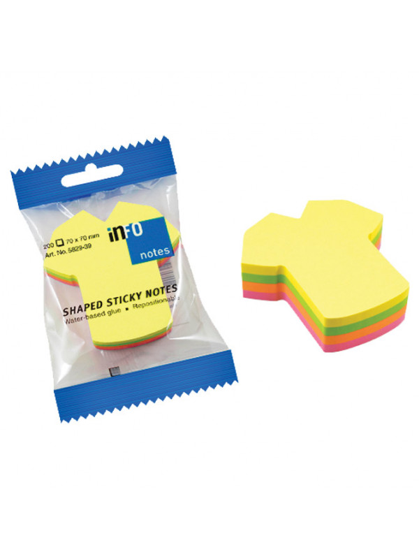 Nalepovacie bločky Global 70x70 mm, v tvare trička , 4 neonové farby.