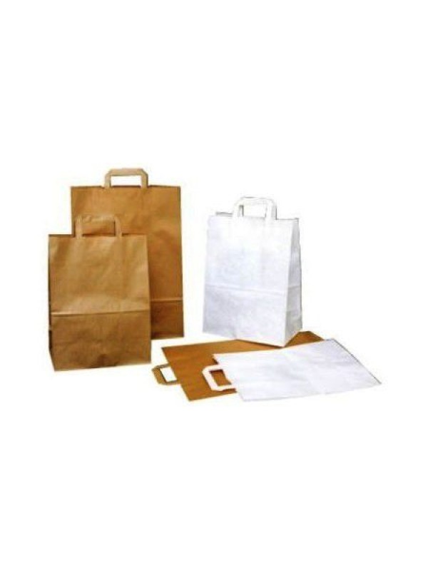 Obyčajné papierové biele tašky s plochými uškami. Rozmery (š x h x v): 35 x 14 x 44cm.