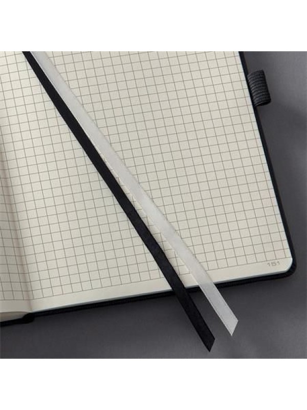 Poznámkový blok s uzatváraním pomocou gumičky a s praktickým držiakom na pero. Možnosť založenia iných dokumentov vďaka rohovému vrecku a archivačnej priehradke. Strany sú očíslované, s 2 označovacími páskami. 80 g/m2 chamois papier.