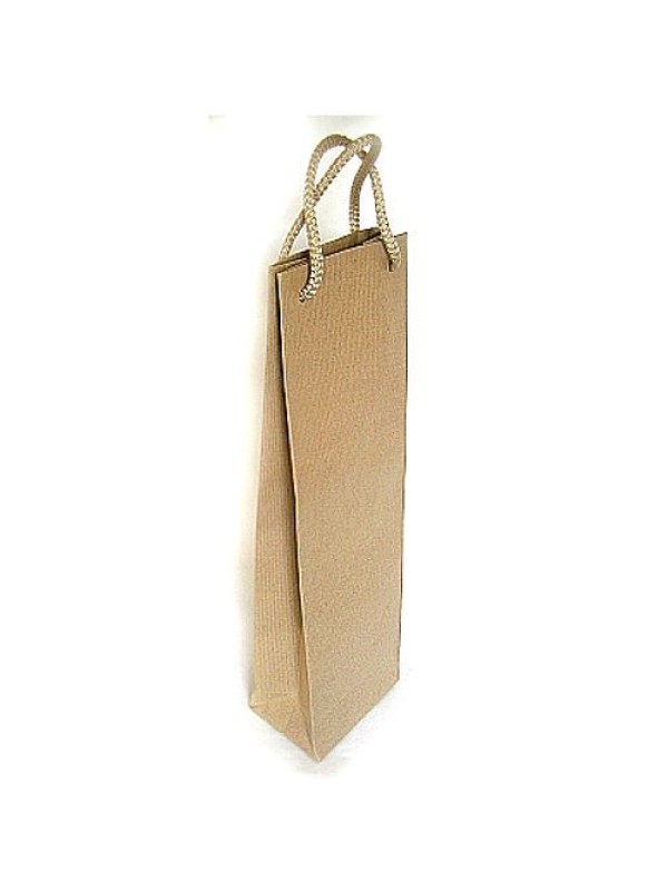 Darčeková taška z hnedého papiera, vhodná na vínovú fľašu. Textilné ušká. Predaj na kusy.  Rozmery (VxŠxH): 41 x 12 x 8 cm.