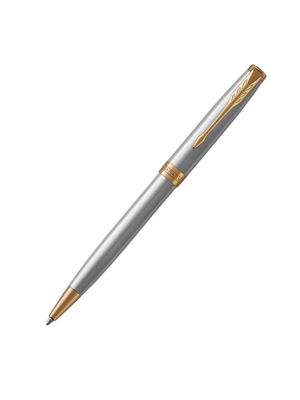 Hrot pera z 18-karátového zlata, telo a vrchnák pera z brúsenej nerezovej ocele. V kombinácii s doplnkami pokovovanými zlatom.