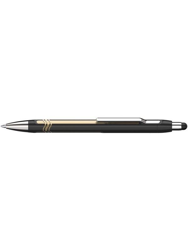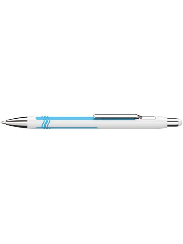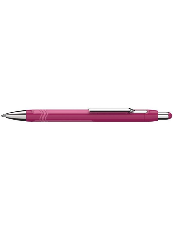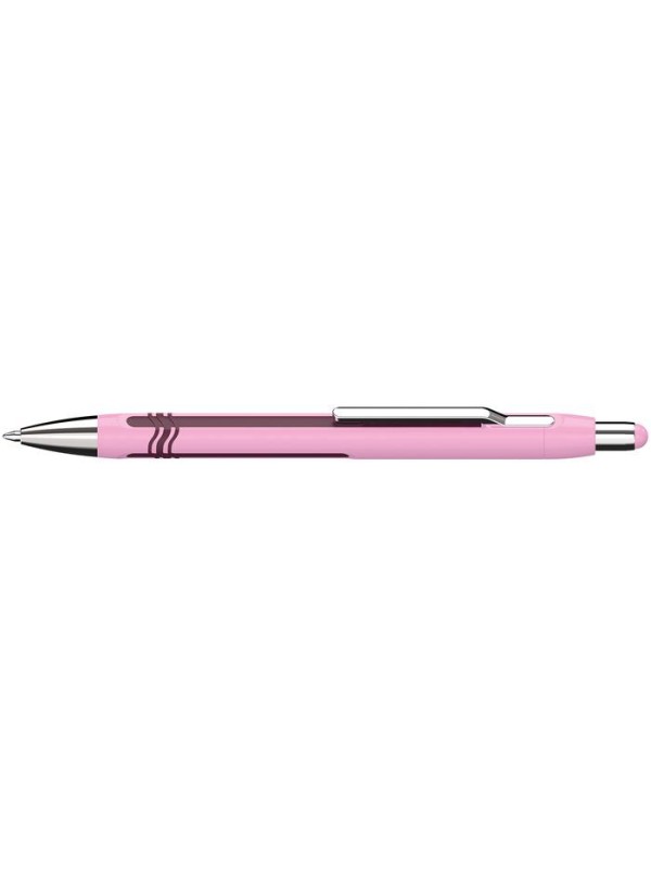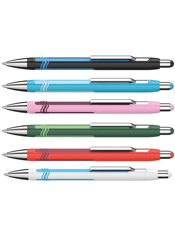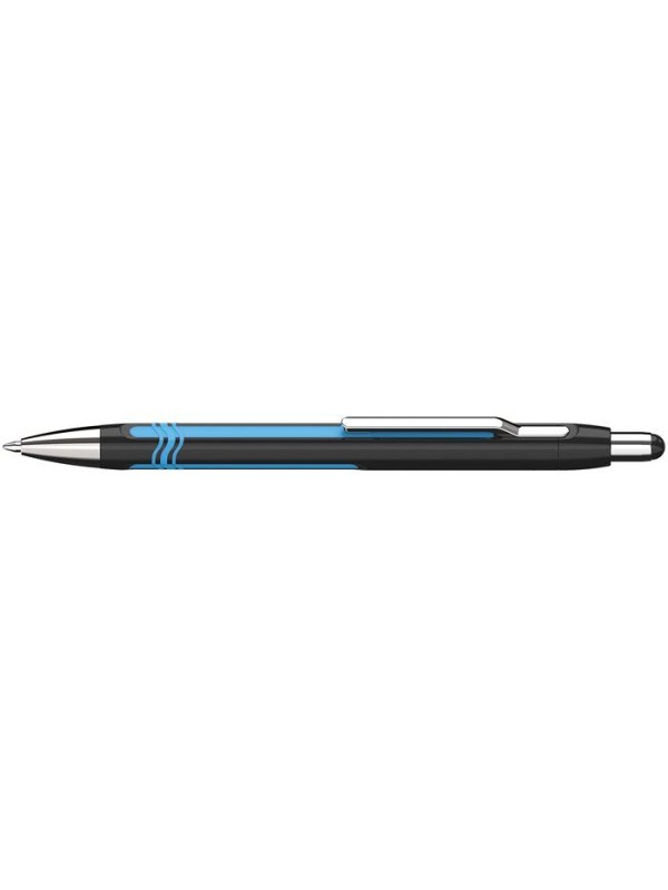 Guľôčkové pero s pogumovaným úchytom, kovovým klipom a tlačidlovým systémom ovládania. Kompatibilné s náplňami Plug&Play.