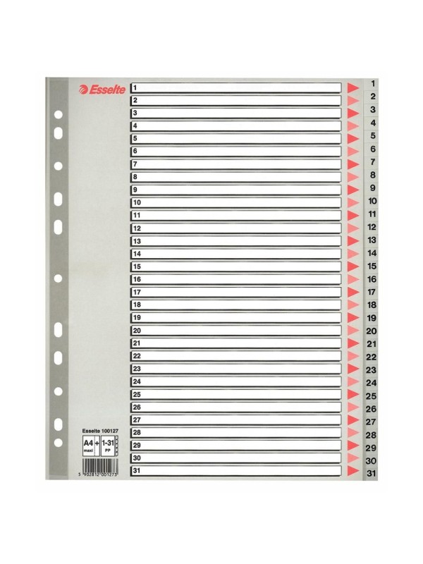 Číselný rozdeľovač 1 - 31 s eurodierovaním. Vyrobený z polypropylénu, titulný list z kartónu, popisovateľný.