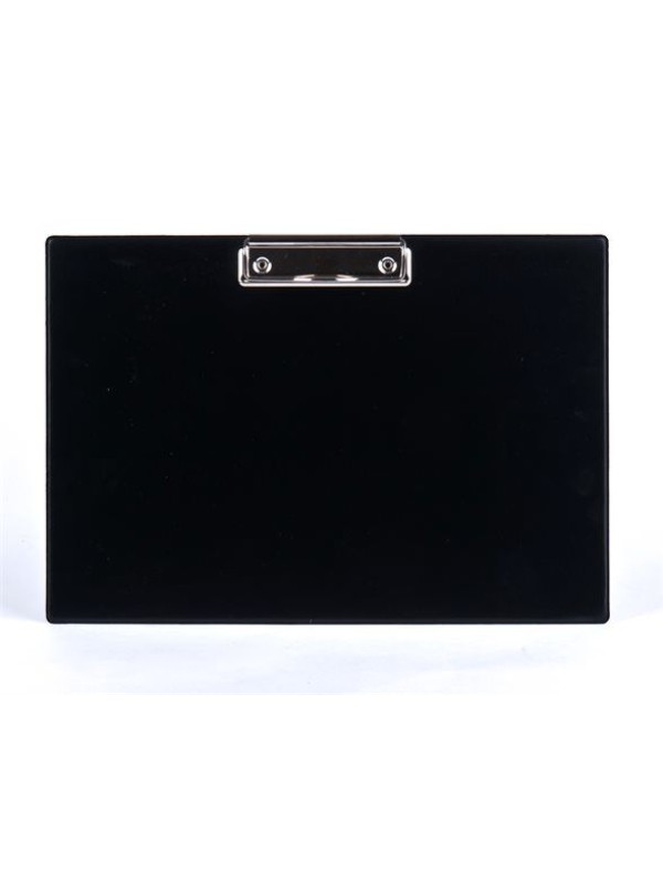 Pevná a pružná plastová podložka formátu A4. Klip je na dlhšej strane podložky.