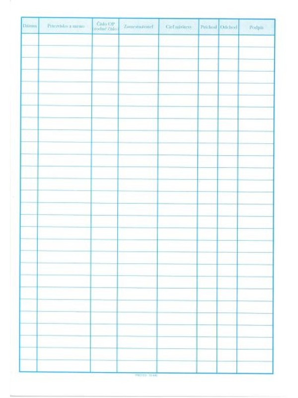 Kniha návštev. Formát: A4.