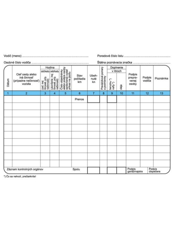 Záznam o prevádzke auta samoprepisovací. 100 listový.