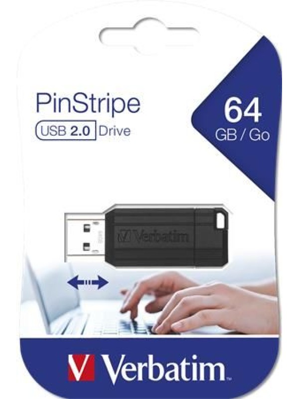 USB kľúč 2.0 VERBATIM PinStripe, 64 GB, čierny