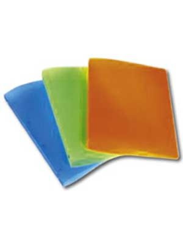 Priehľadný zakladač z extra silného polypropylénu hrúbky 800 µm. 4 krúžky, kapacita 70 listov. Formát A4, šírka chrbta 2 cm. Väčšie balenie 25 ks. Chrbát: 2 cm. Farby: číra, zelená, oranžová, modrá.