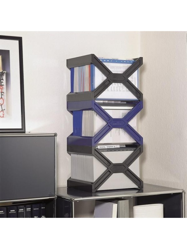 Zásobník na závesné obaly s kapacitou 30 ks závesných obalov A4. Vhodný do políc alebo na stôl. Vyrobený z tvrdeného plastu. Zásobníky sú navzájom stohovateľné.