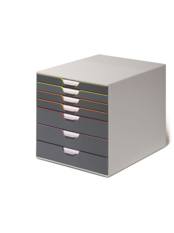 Boxy so 7 zásuvkami s vnútrami dúhových farieb dodajú kancelárii nádych elegancie. Pri zatvorení farebné línie iba jemne vystupujú z elegantnej sivej farby.