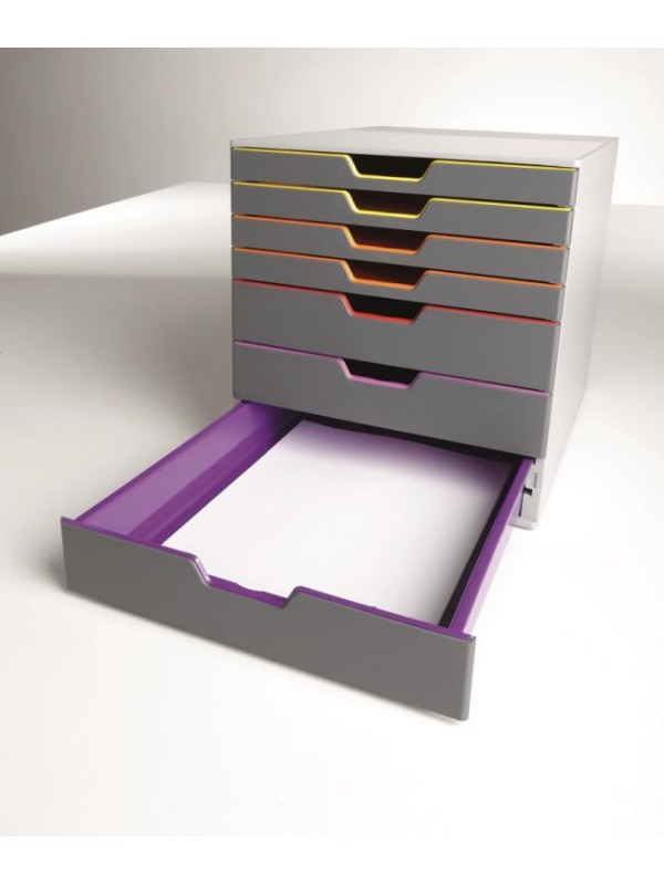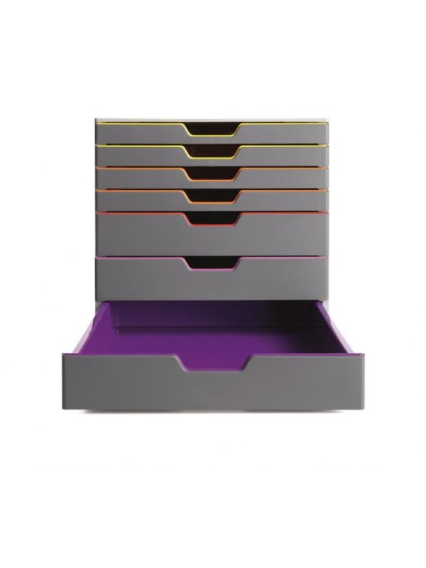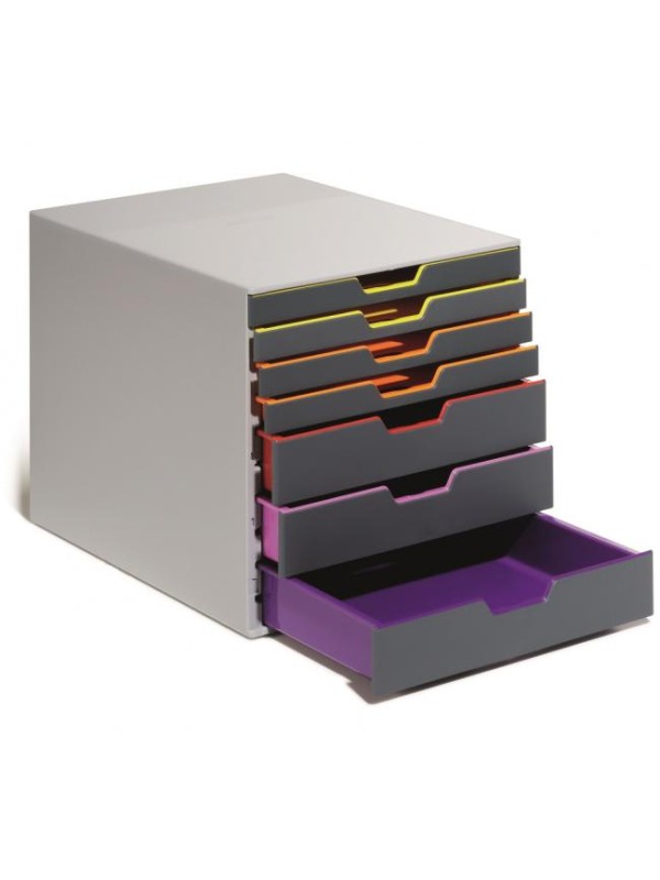Boxy so 7 zásuvkami s vnútrami dúhových farieb dodajú kancelárii nádych elegancie.